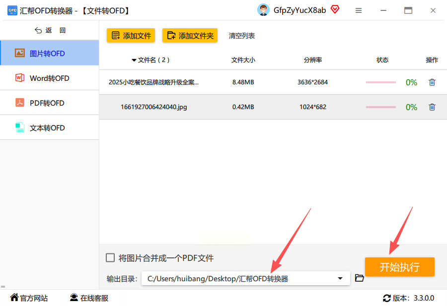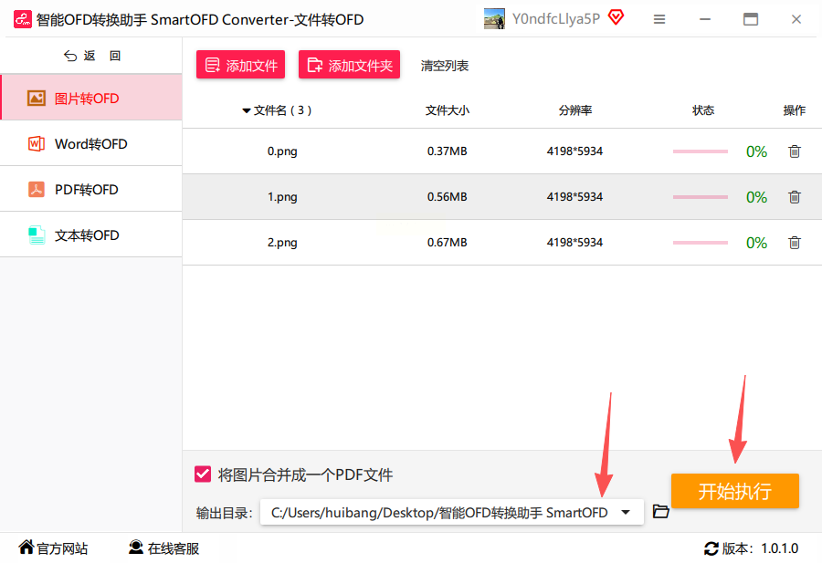 4. 选好保存路径,点击「开始转换」,启动图片转ofd格式操作;