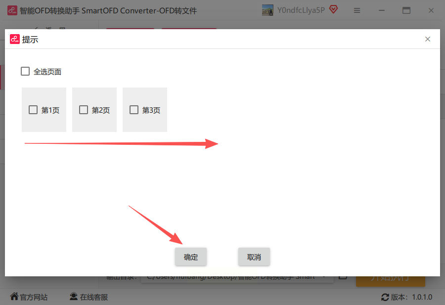 步骤四:在弹出的页码选择窗口中,勾选你需要转换的页面范围,然后点击“确定”。
