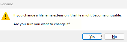 改完之后按回车键。系统通常会弹出一个警告,大意是说“改变文件扩展名可能导致文件不可用”。你确认文件有备份或者不重要,就点“是”或“Yes”。