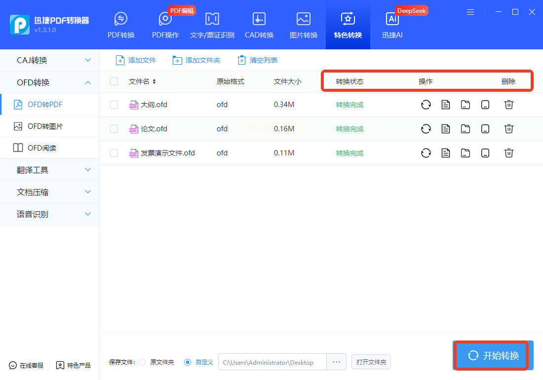 1. 进入OFD转换界面:打开软件后,在特色转换选项中找到“OFD转换”,然后选择“OFD转PDF”。这个转换功能设计得很直观,容易上手。