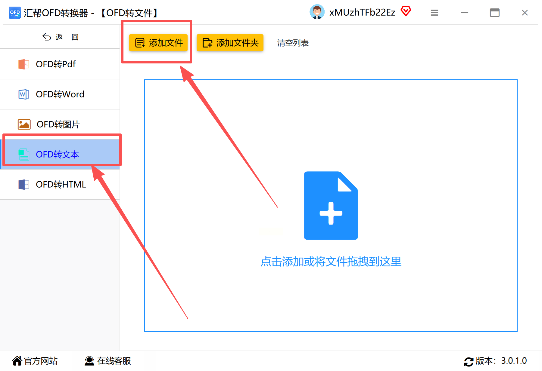 - 点击「添加文件」按钮,找到你的OFD文件(如果是多个文件,按Ctrl键多选,或者直接拖文件夹进去)
