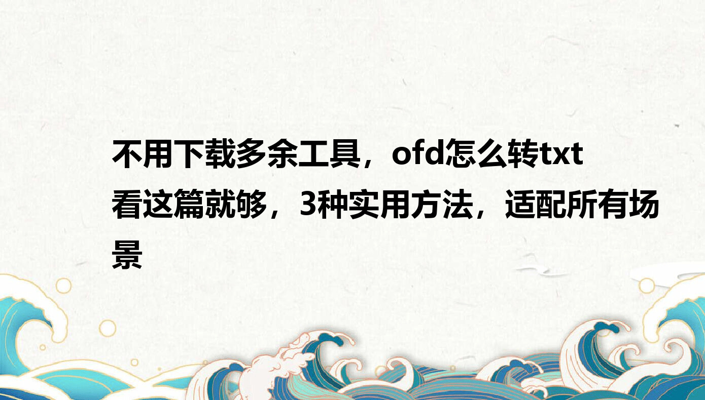 有没有一瞬间,你对着电脑里的OFD文件犯愁?电子发票、政府文件、合同全是OFD格式,想复制里面的文字编辑、存到手机里,却不知道ofd怎么转txt;找了很多方法,不是操作复杂,就是转换后文字乱码、内容缺失。其实ofd怎么转txt根本不用愁,不用专业知识,不用瞎摸索,今天这篇干货,不仅教你3种零门槛转换方法,还帮你避开所有坑,不管是单个OFD文件,还是批量转换,轻松搞定,新手也能闭眼冲!