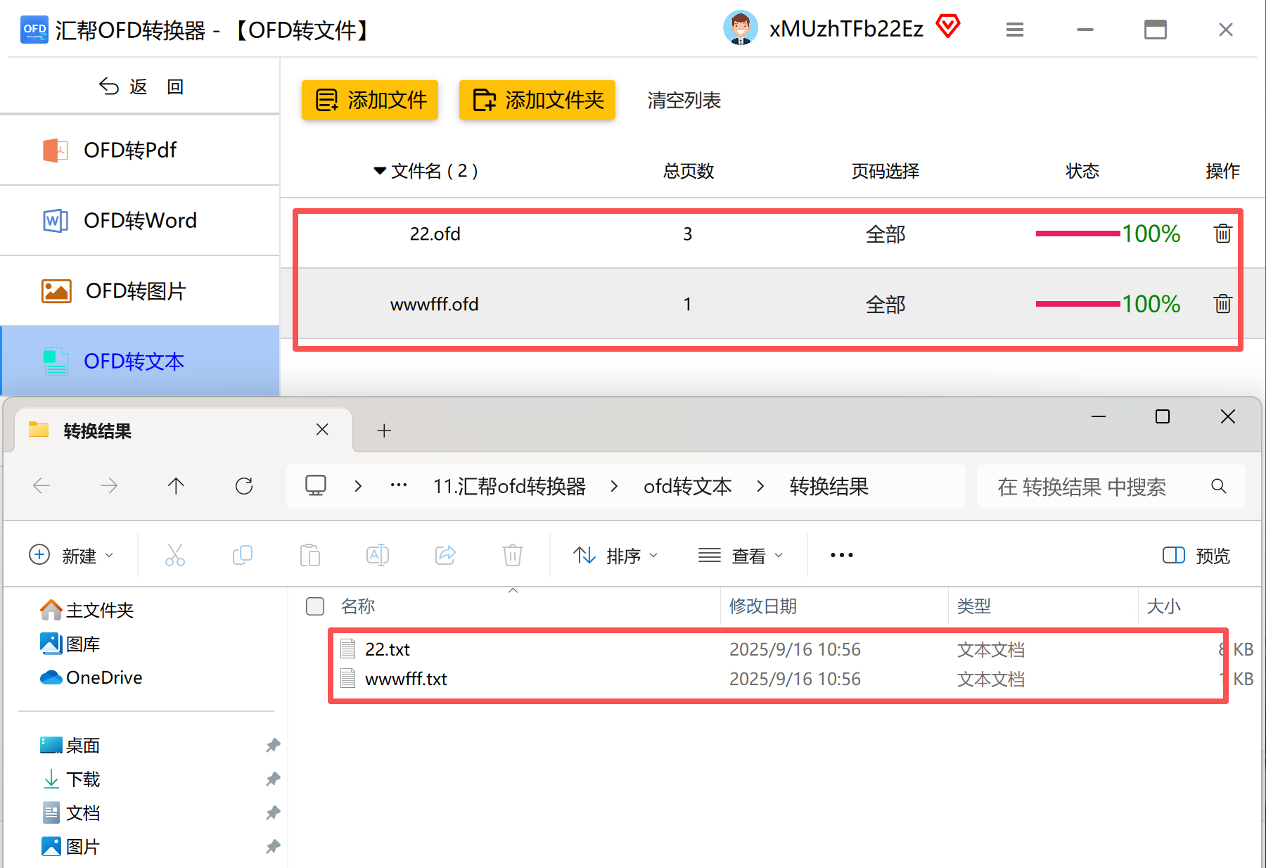- 点击「开始执行」按钮,软件会自动把OFD文件变成TXT