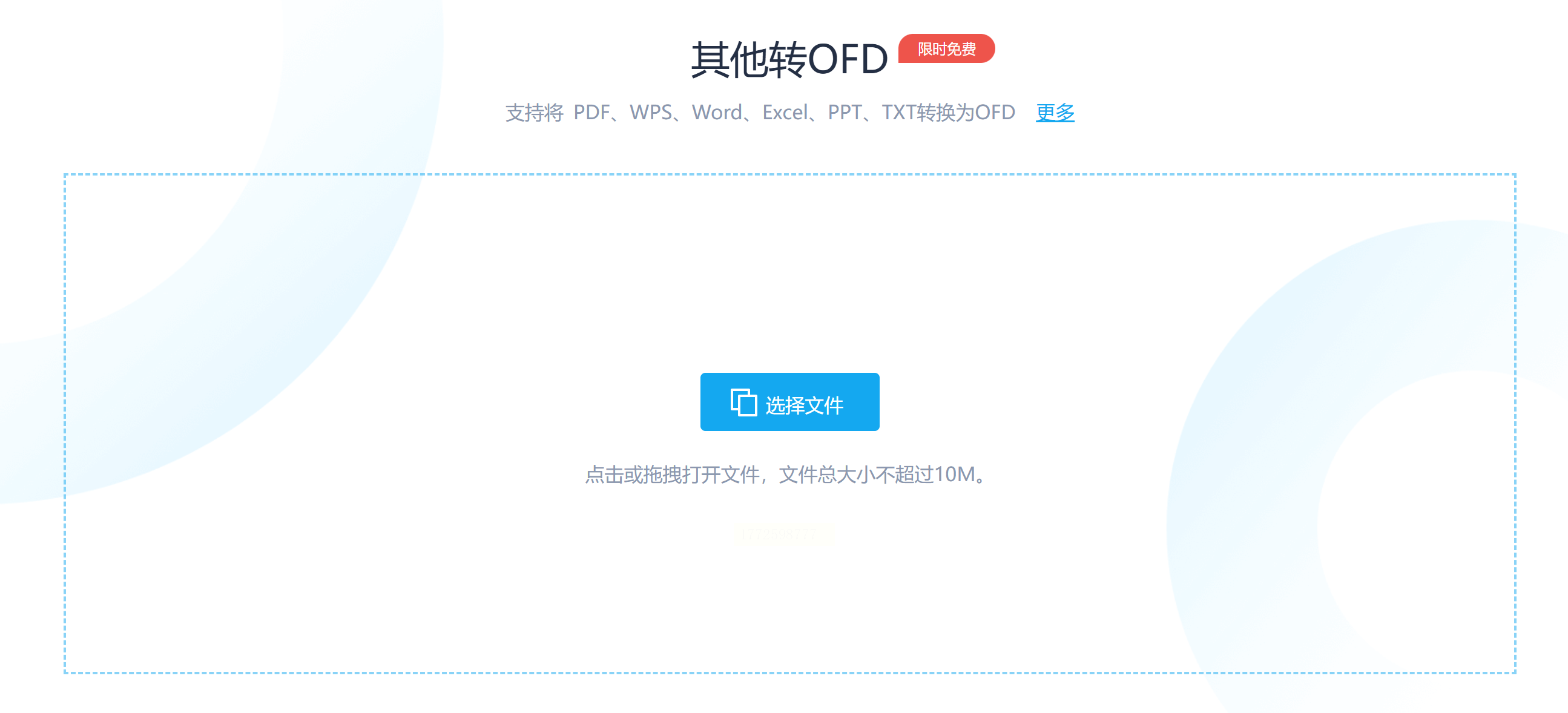 - 点击页面中间的「选择文件」按钮,或者直接把你的OFD文件拖到页面上(像拖文件到微信聊天窗口一样)