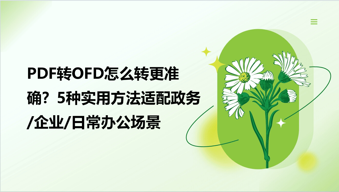 在数字化办公场景中,PDF与OFD作为两种主流文档格式经常需要互相转换。PDF凭借其跨平台兼容性成为文件传输首选,而OFD作为我国自主研发的版式文档标准,在政务、金融等领域应用广泛。面对不同场景下的格式转换需求,如何高效、准确地完成转换操作成为办公效率的关键。本文将从实用角度出发,详细拆解5种PDF转OFD的操作方法,帮助用户根据自身需求选择合适工具。