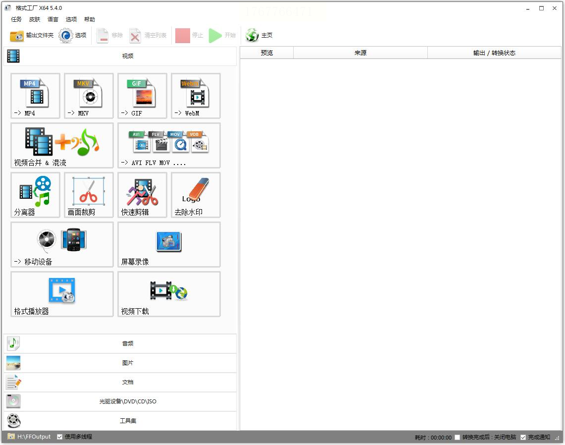 “格式工厂”是一个老牌且强大的免费格式转换工具,支持视频、音频、图片、文档等上百种格式的相互转换,用来批量处理OFD文件非常方便。