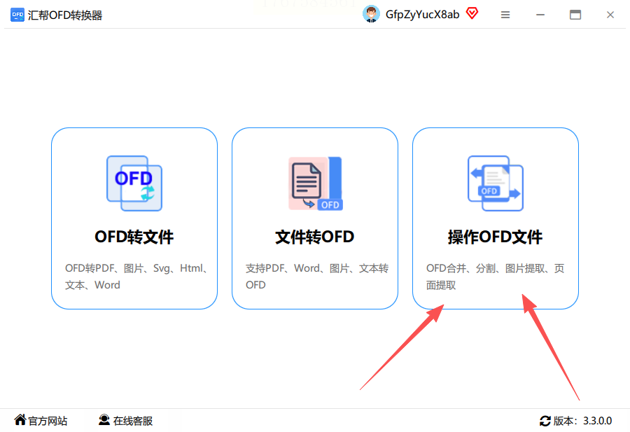 双击桌面上的快捷方式打开汇帮OFD转换器,在主界面中找到“操作OFD文件”选项并点击进入。这个功能区会列出所有OFD文件相关的处理选项,包括转换、编辑、分割等。