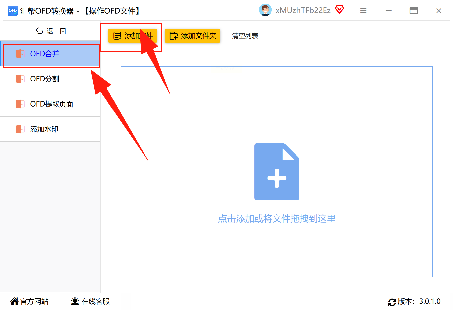 2. 文件导入:点击"添加文件"按钮,支持按文件或文件夹层级导入,也可通过拖拽操作批量添加。对于成百份零散文件,"添加文件夹"功能可一键识别目录下所有OFD文档。