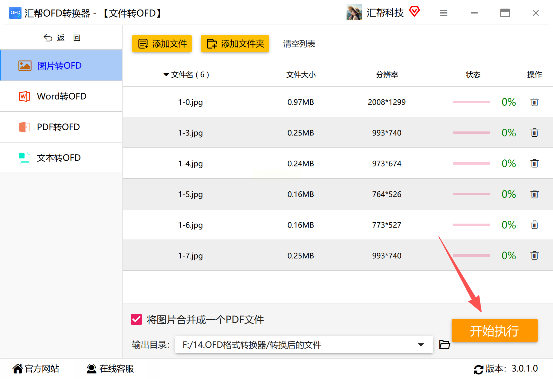 * 输出模式: 选择将多张图片合并输出为“单个OFD文件”,还是每张图片分别生成“多个独立的OFD文件”。