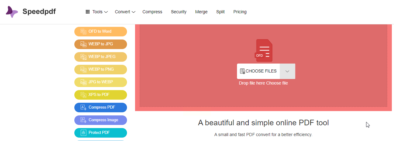 如果不想安装软件,直接用浏览器在线操作也行。Speedpdf支持多种格式转换,OFD转图片只需3步,适合偶尔用一次的情况。