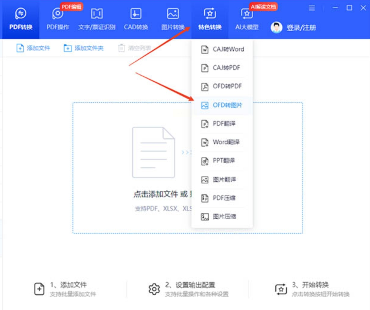 1. 打开软件选功能:下载安装后,打开软件,首页能看到“ofd转图片”,直接点进去。