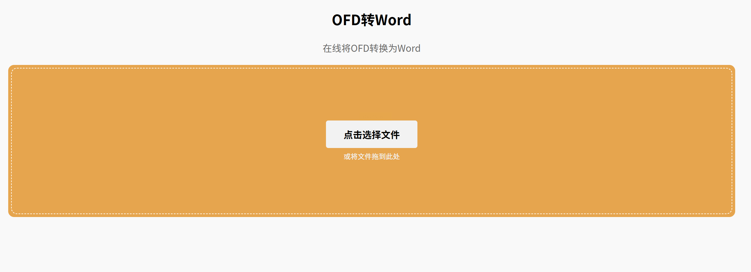 2. 上传文件:点击"选择文件"按钮,从本地电脑中选择需要转换的OFD文件。平台支持单文件或压缩包上传,单次最大支持200MB。