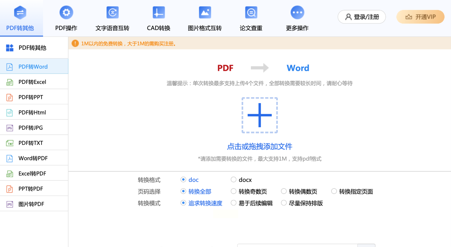 对于偶尔使用的场景,推荐"转转大师在线转换平台"。无需安装软件,通过浏览器即可完成转换,适合处理少量文件或紧急需求。