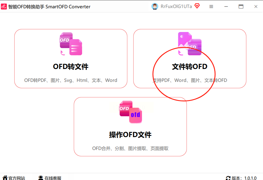 打开软件后,找到“文件转OFD”这个按钮点进去。