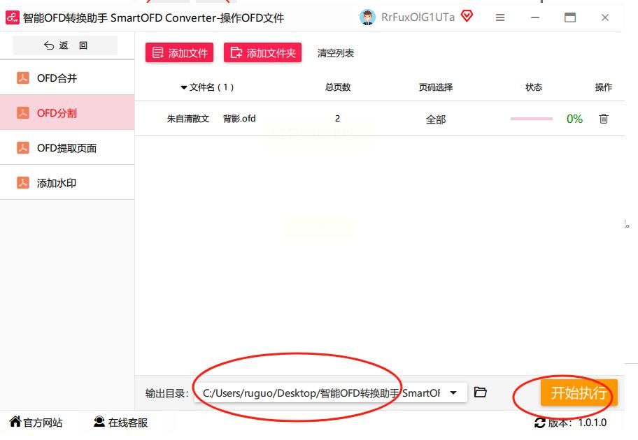 下方输出路径一定要改到桌面!不然找文件像挖宝藏。改好后点“开始执行”,进度条跑起来的时候,记得去倒杯水——这软件处理速度很快,100页的文件也就30秒搞定,比你等外卖小哥还快!