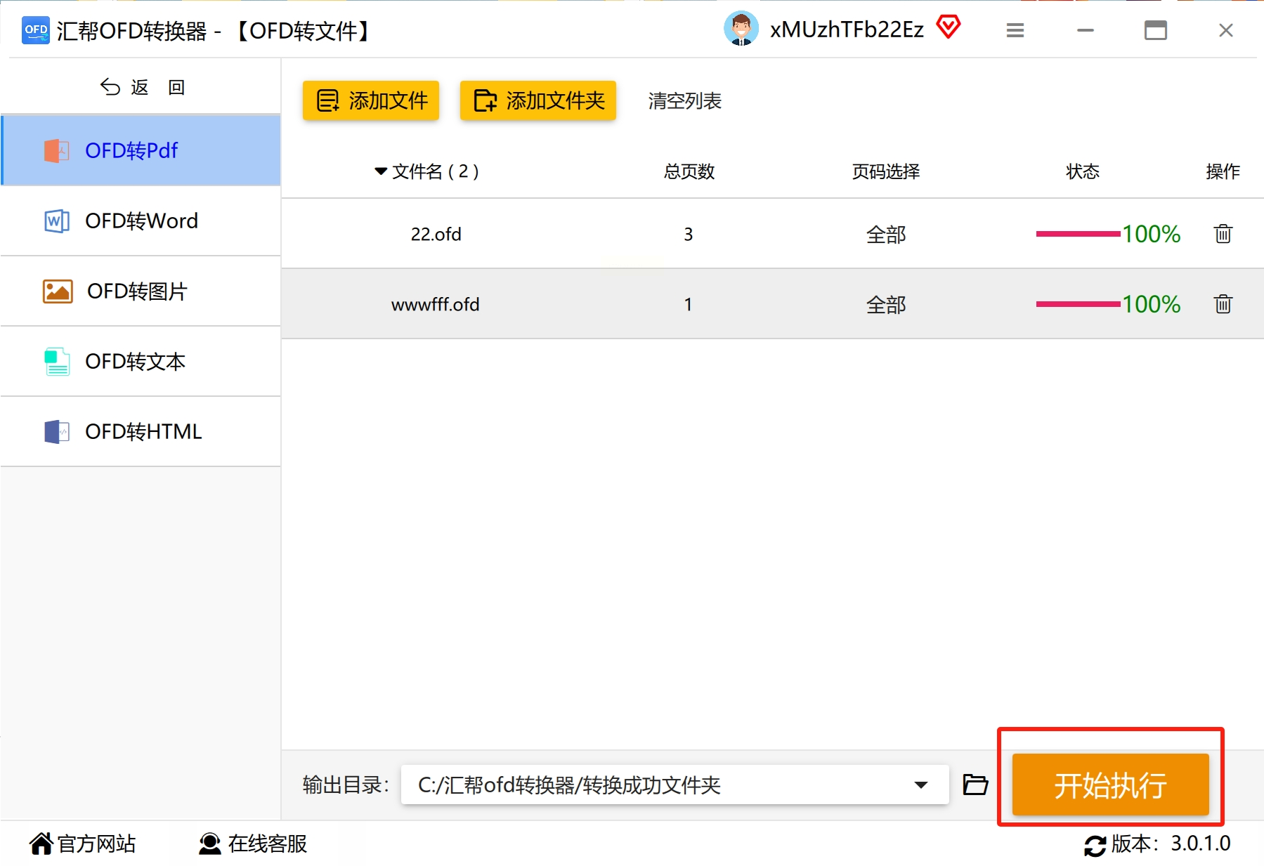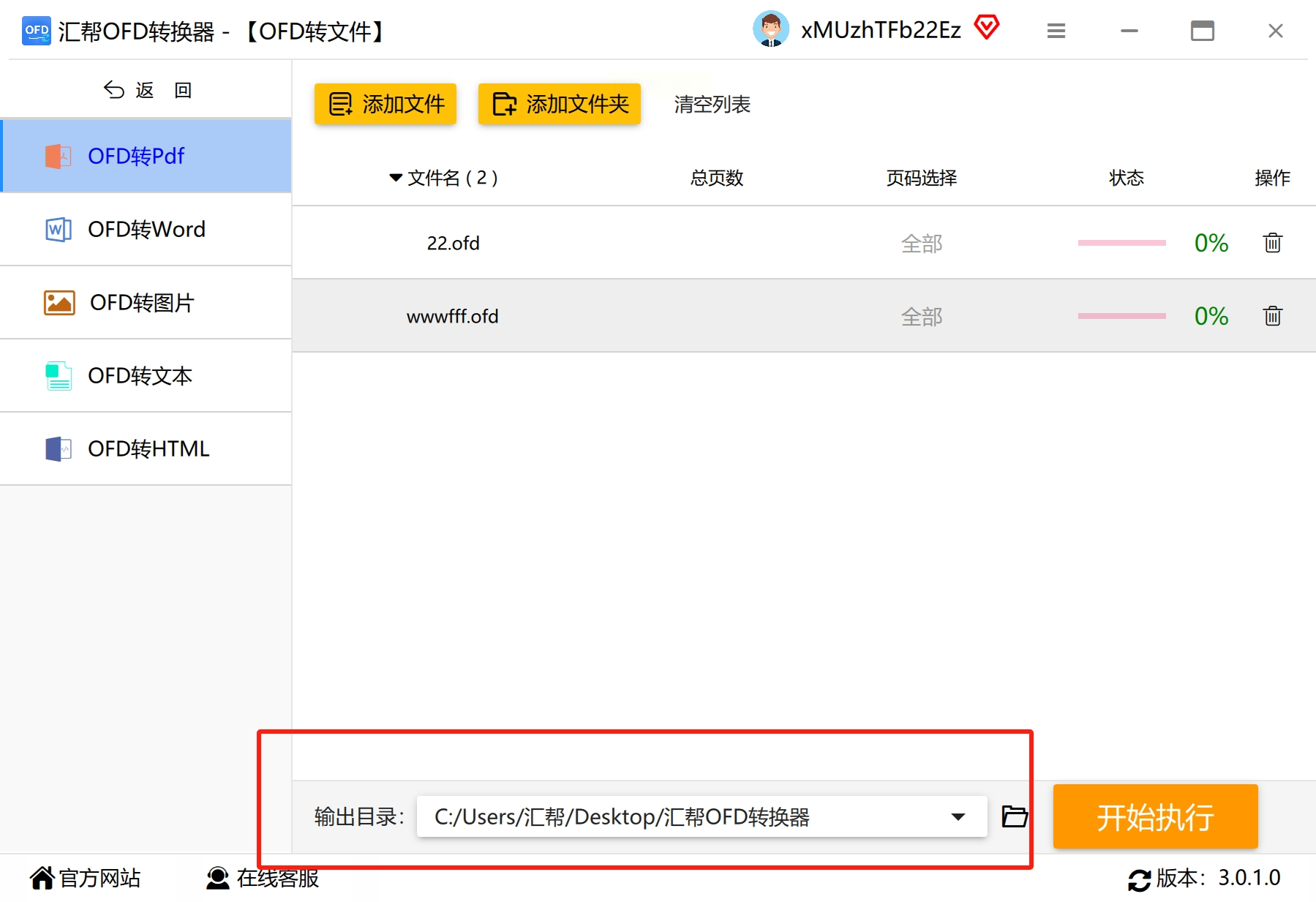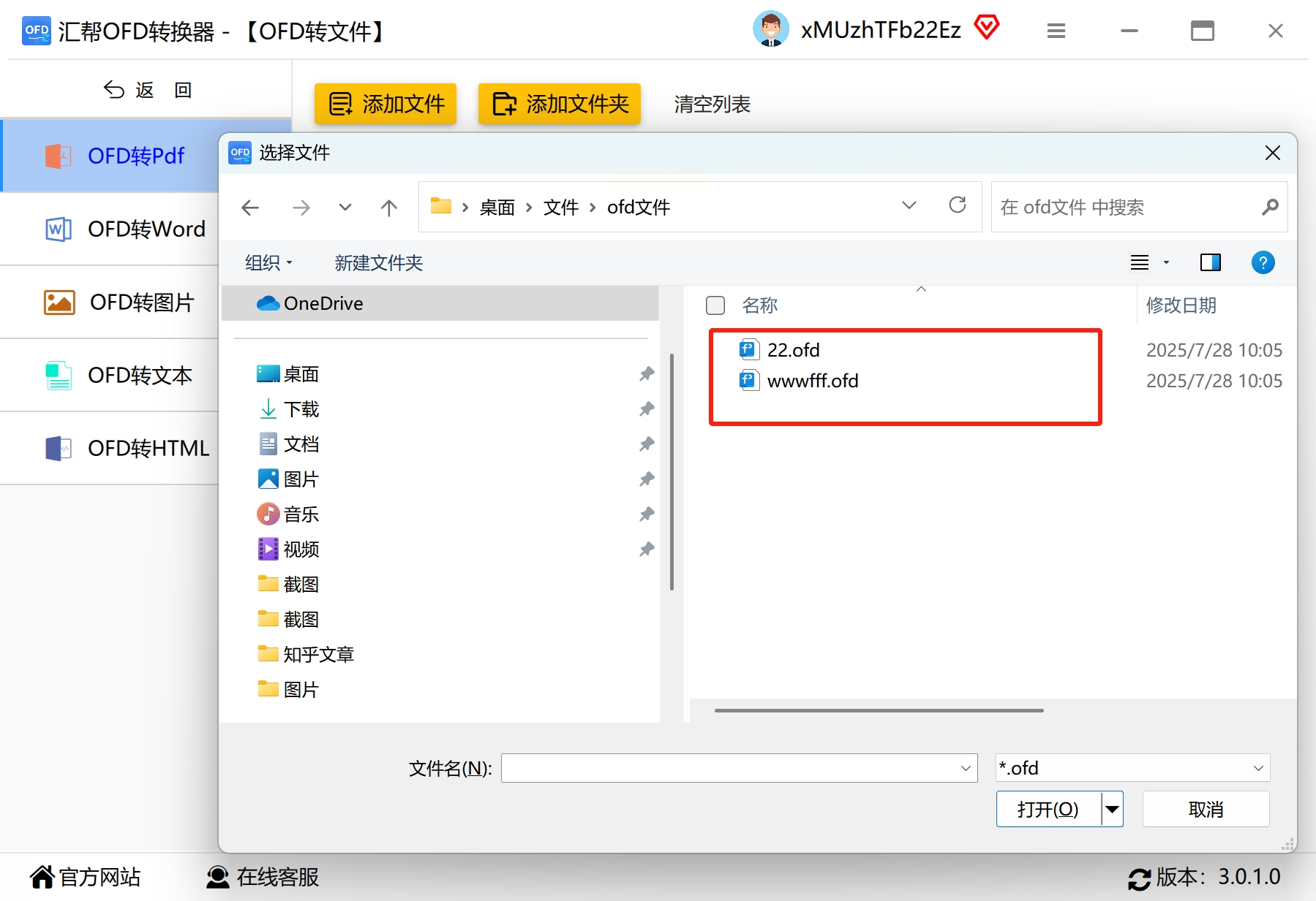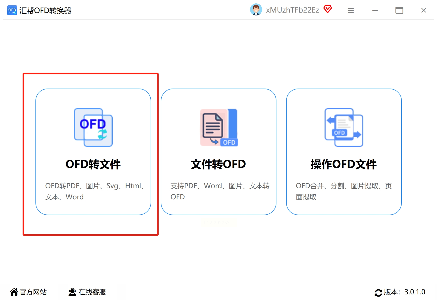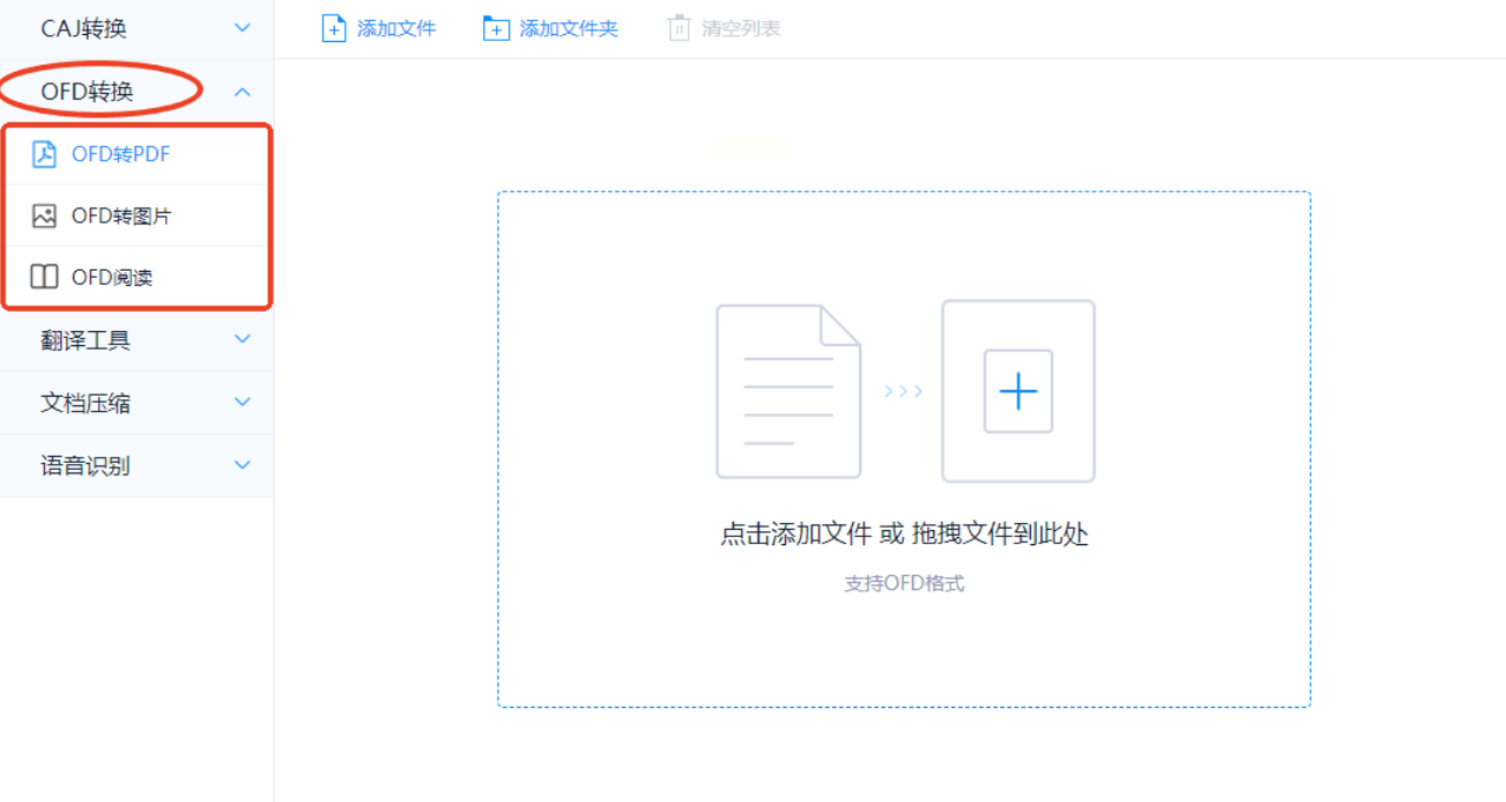 步骤一:启动软件后进入主功能界面,在左侧导航栏选择"OFD转PDF"核心功能模块