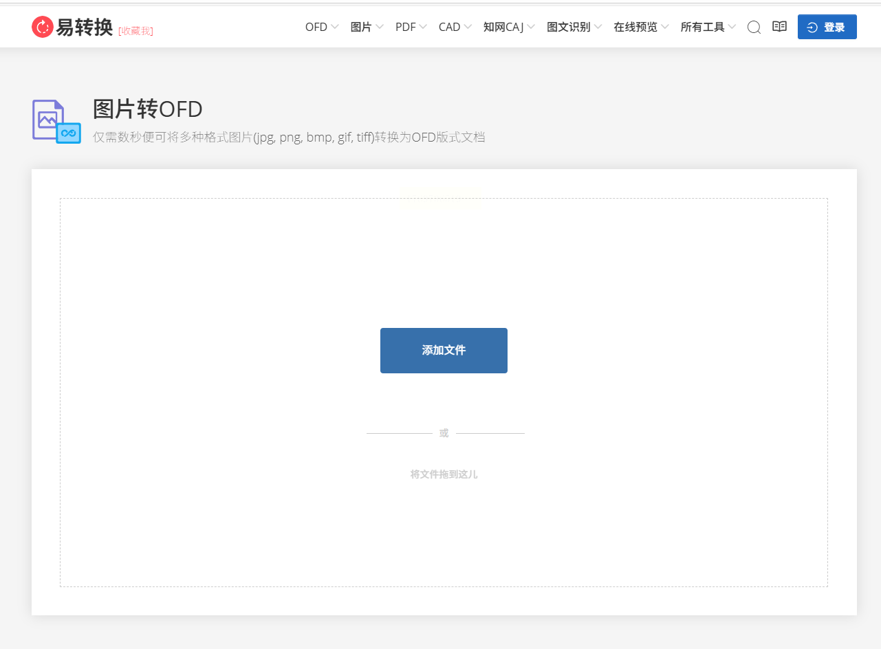步骤二: 进入转换界面后,左侧会有具体的转换类型选项。这里我们选择“图片转ofd”。接着,在右侧的区域,你可以把要转换的图片文件拖拽进去,或者点击上传按钮进行添加。它支持一次性添加多张图片,批量操作起来很方便。