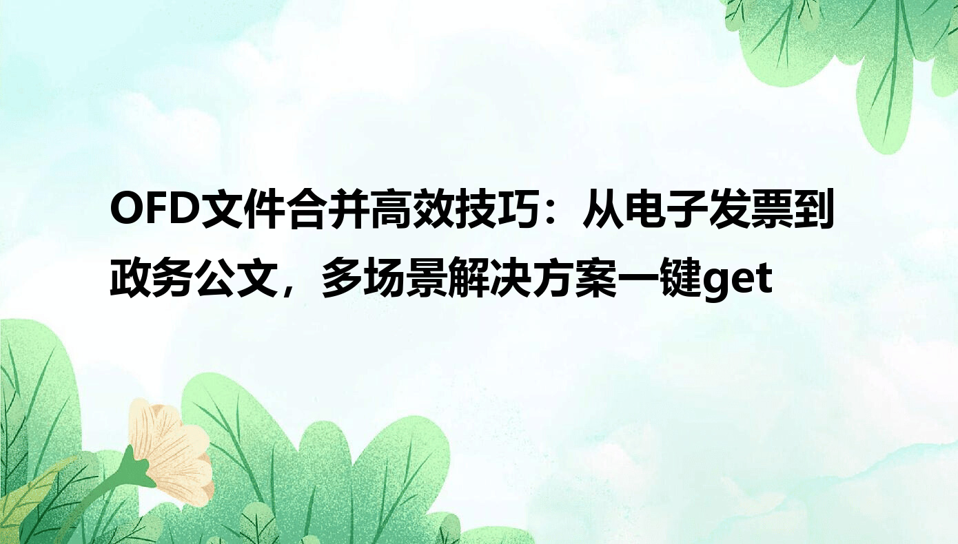 在数字化办公日益普及的今天,OFD作为我国自主研发的国家标准格式,已广泛应用于财务电子发票归档、政务公文整合、项目报告管理等场景。然而,面对零散分布的OFD文件,如何快速实现跨文档合并却成为许多办公者的痛点。无论是财务人员每月处理的数十张电子发票,还是政务人员需要整合的多份公文,亦或是项目组零散的OFD报告,都亟需一套高效、安全且易上手的合并方案。本文将从不同用户需求出发,详解六大OFD合并工具的实操步骤,帮助读者根据自身场景选择合适的解决方案。