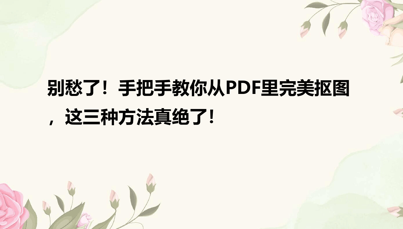 老板或者客户发来一个PDF文件,里面有几张特别棒的示意图或者产品图,你想拿出来用在你的PPT或者报告里,结果发现:嚯,这图“嵌”在PDF里,就像被焊死了一样,右键另存为?根本没那个选项!直接截图?图片变得模糊不说,尺寸也不对,还得重新调整,费时费力,效果还差。
