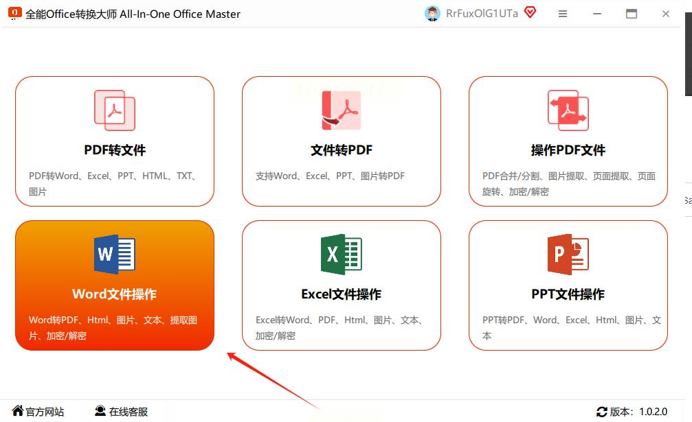 双击桌面上的「全能Office转换大师」图标,在主界面左侧菜单中,找到“Word文件操作”模块,点击进入。