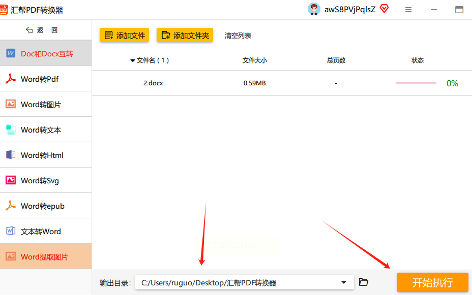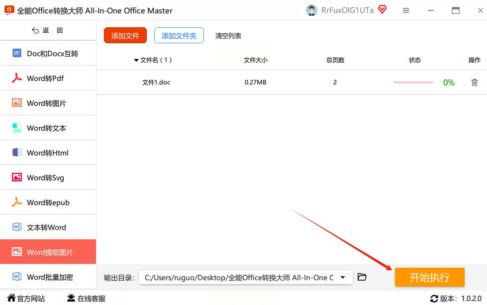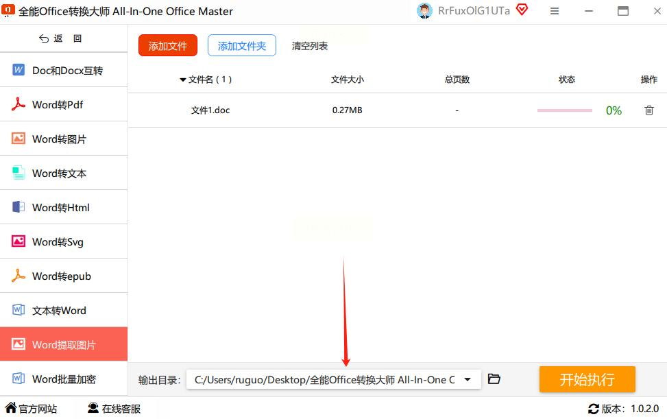 点击“开始执行”按钮,软件会自动完成图片提取。