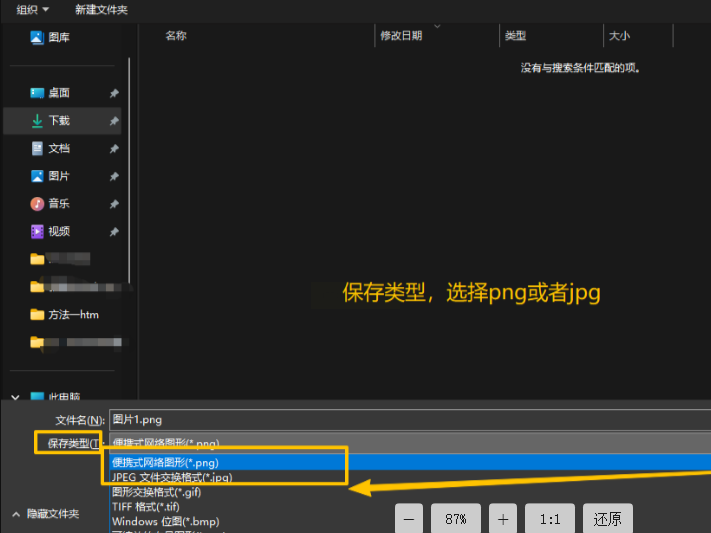 系统会弹出“另存为”窗口,在“保存位置”中选择你想存放的文件夹,在“保存类型”中选择图片格式。