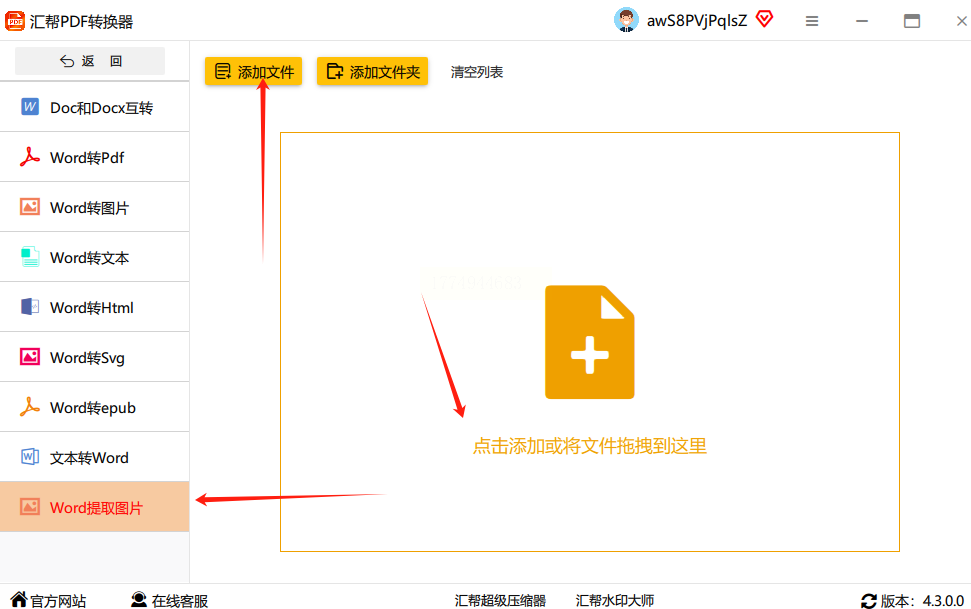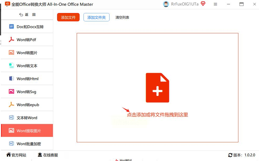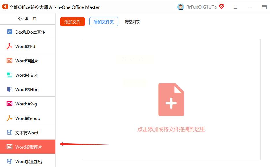 点击“添加文件”按钮,从电脑中选择需要提取图片的Word文件,支持批量添加。
