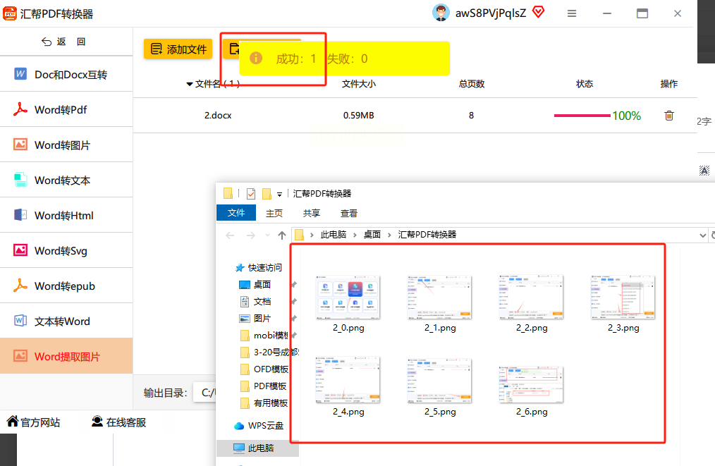 提取完成后,系统会提示“处理完成”,打开目标文件夹即可查看提取的图片。