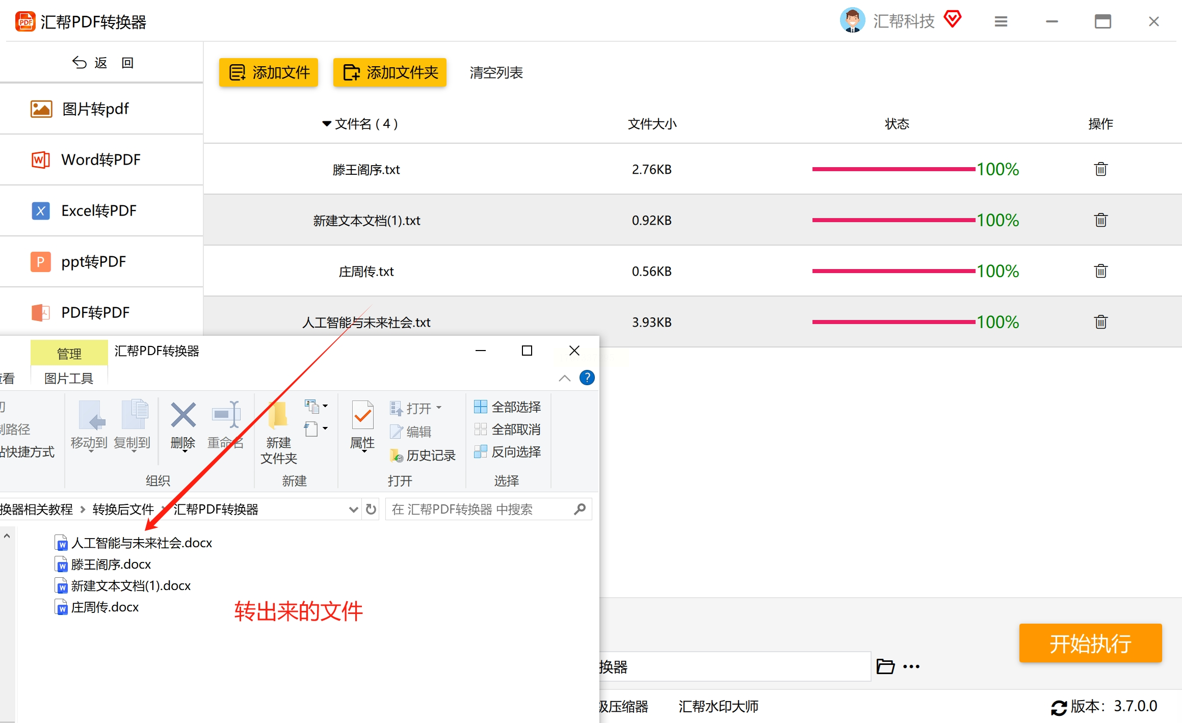 6. 当所有文件状态显示为“转换成功”或“100%”后,你可以点击“打开输出文件夹”直接查看转换好的Word文档,或者到之前设置的保存目录中去查找。