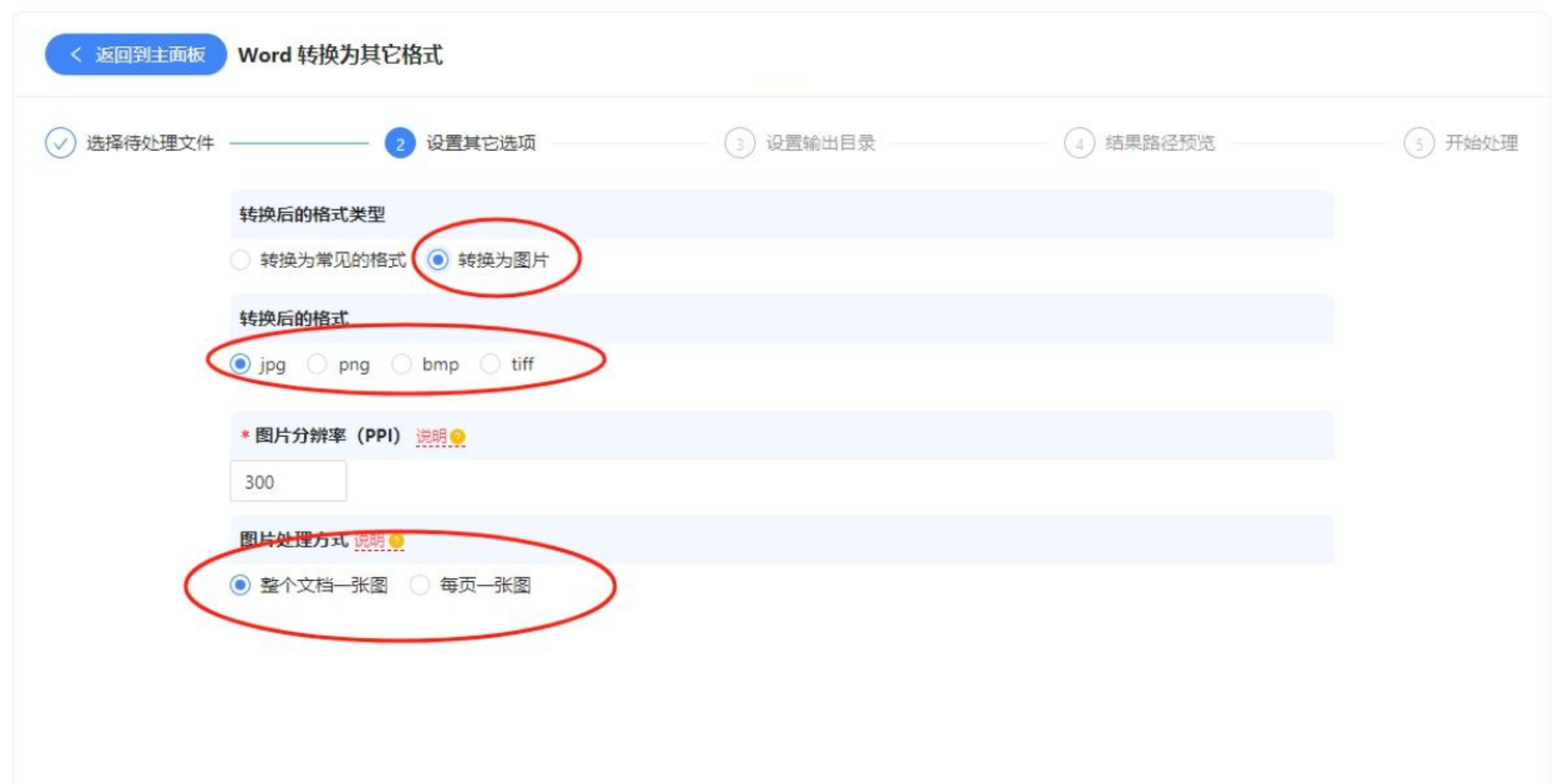 步骤三:在设置中,不仅可以选择图片格式,还能设定是输出为单张长图还是每页独立图片。