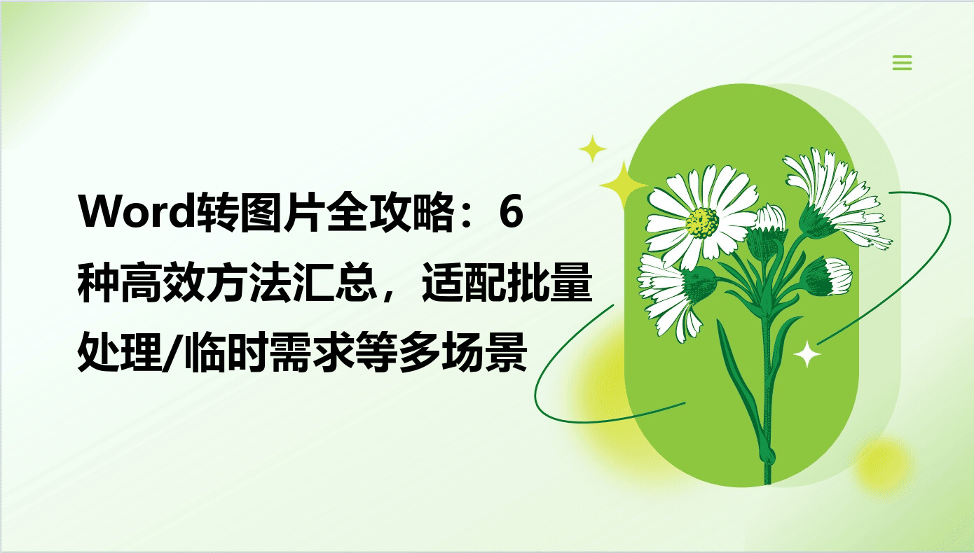 在日常工作和学习中,我们常常需要将Word文档转换为图片格式。无论是为了在社交媒体上分享精美的文档内容,还是在演示中确保排版万无一失,图片格式都能完美保留原始布局,避免因设备或软件差异导致的格式错乱。更重要的是,转换为图片后,文档内容不易被随意编辑,在一定程度上保护了你的劳动成果。今天,我们就来深入探讨几种高效可靠的转换方法,帮你轻松应对各种场景需求。
