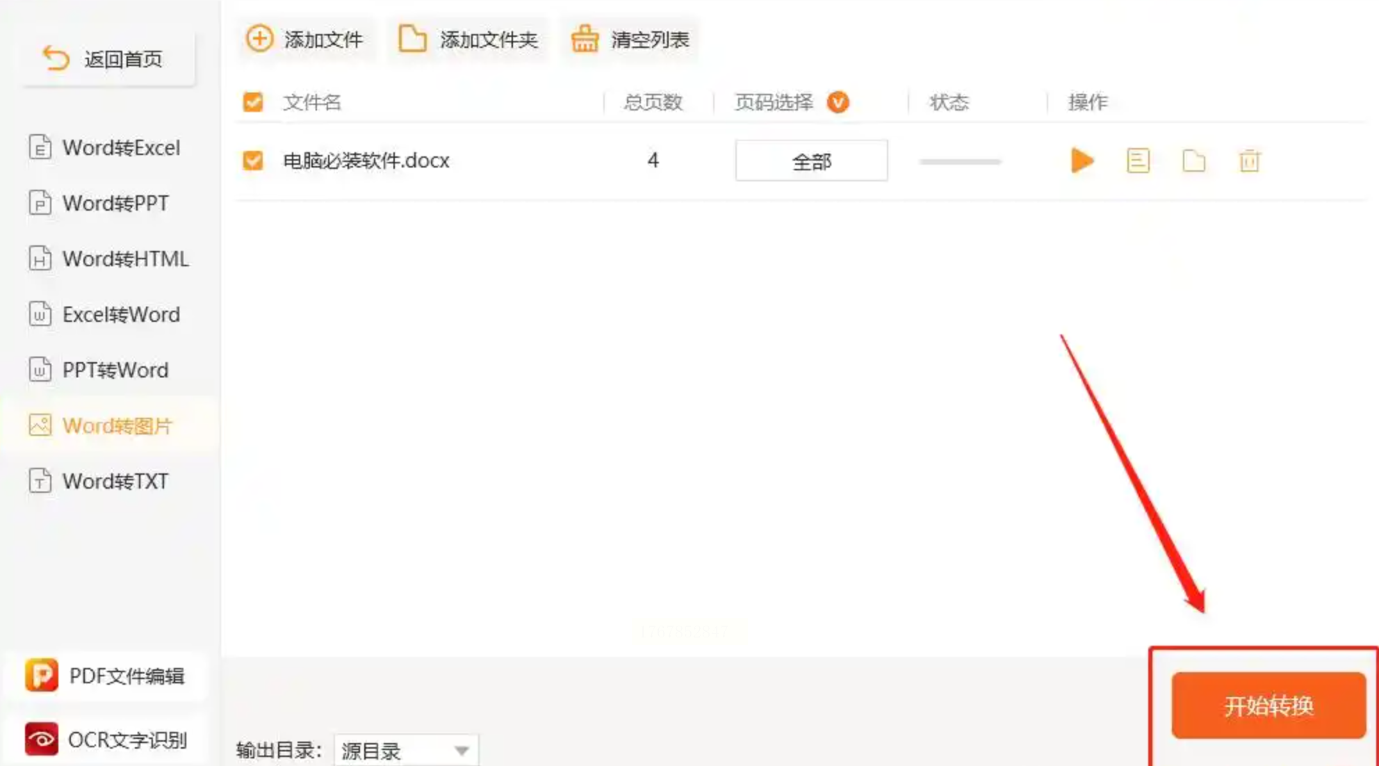 步骤四:确认文件无误后,点击右下角的转换按钮,软件会自动将文档页面输出为图片。