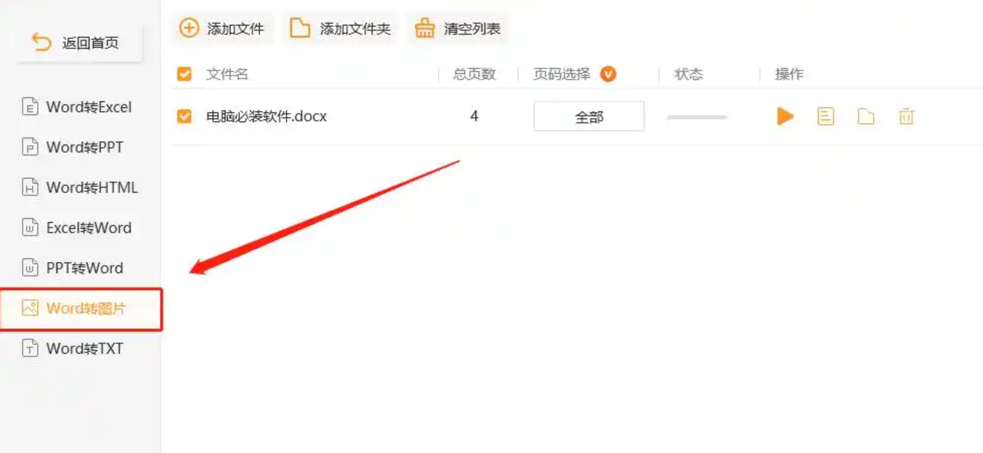 步骤二:在左侧功能列表中,选择“Word转图片”选项。