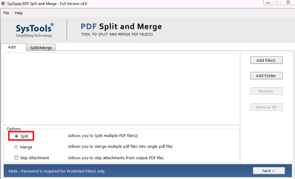 点击"添加文件"按钮,或直接将PDF文档拖拽至中央区域框内。支持单文件添加、多文件批量导入,也可通过"添加文件夹"功能处理同一目录下的多个PDF文件,大幅提升批量处理效率。