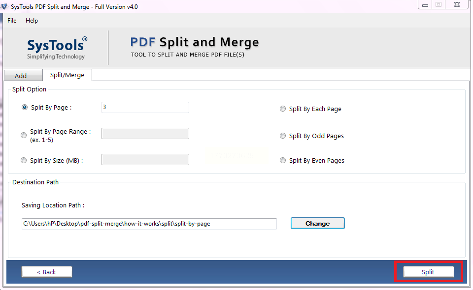 4. 自定义输出路径后点击"Split",完成后查看结果。