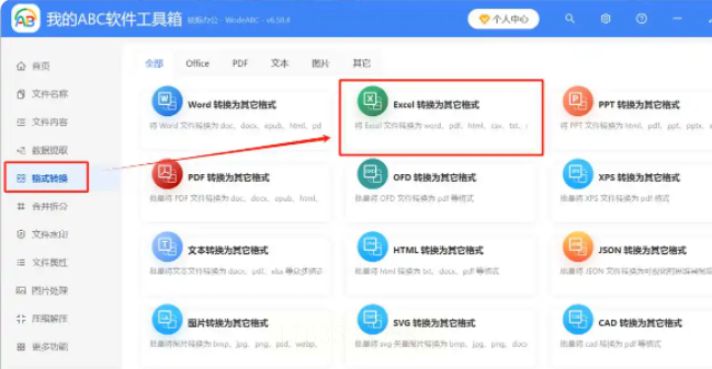 启动软件后,在主界面找到“格式转换”分类,选择“Excel转换为其它格式”功能。进入操作页面后,你会看到一个明显的“添加文件”区域。这里支持拖拽操作,可以直接把文件夹里的多个Excel文件一起拖进来。