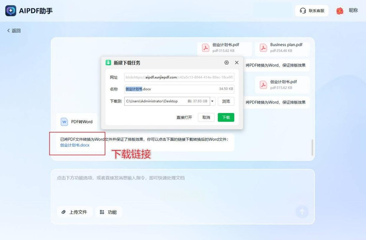 如果不想安装软件,也可以使用在线工具。AIPDF助手WEB是一个在线PDF处理平台,支持通过自然语言指令完成转换任务,适合不太熟悉软件操作的用户。