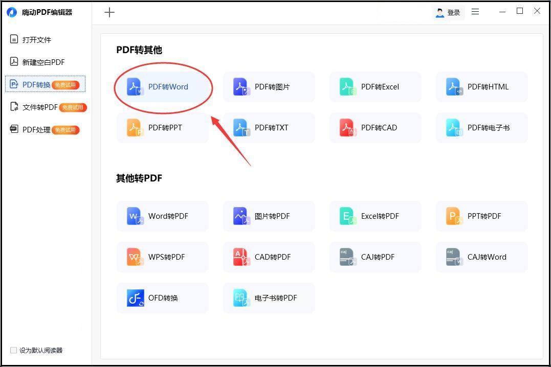 1. 安装并打开嗨动PDF编辑器,在主界面找到"PDF转Word"功能模块,点击进入转换界面。