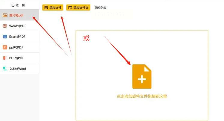 接着,进入新的界面,再左侧找到【图片转pdf】,然后通过左上角的“添加文件”按钮,将需要合并的图片批量导入。