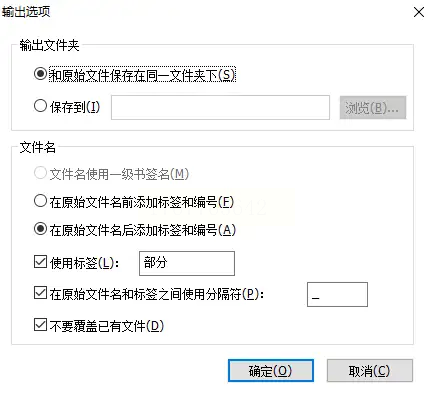 步骤四:别急着点确定,先点击设置窗口左下方的【输出选项】。在这里,你可以预先设定好拆分后文件的保存位置和命名规则,让文件管理井井有条。
