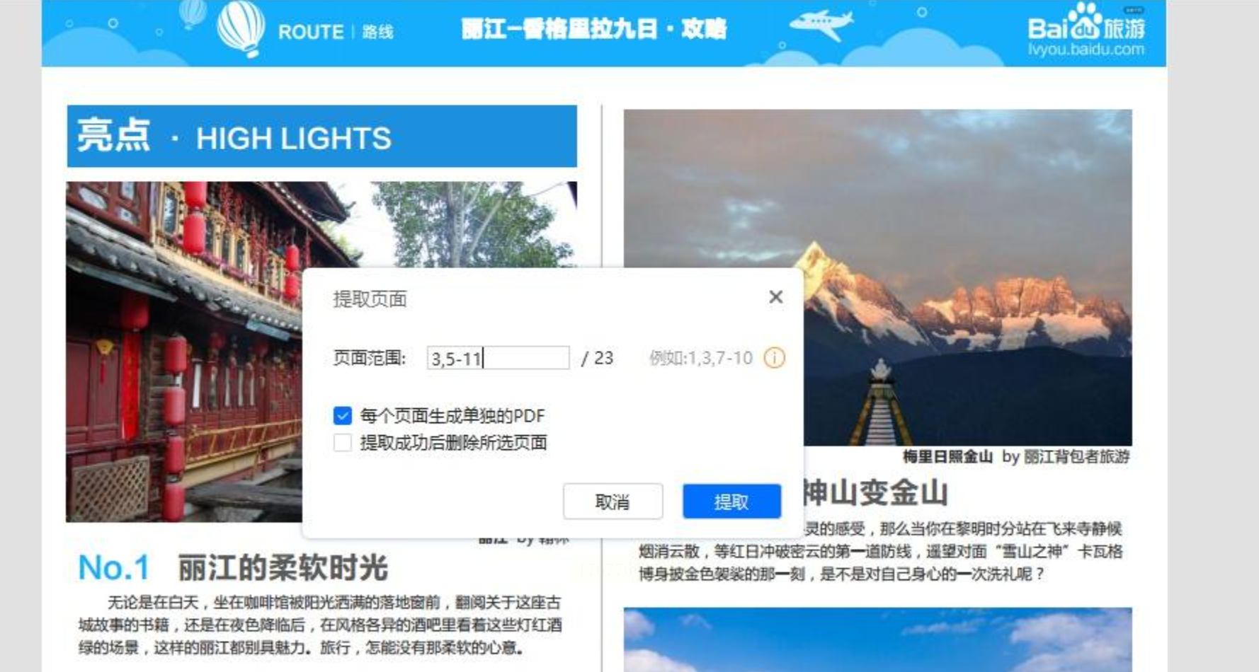 步骤五:点击后,会弹出一个页面选择框。你可以在这里自由勾选需要提取的页码,比如单独的第5页,或者连续的第10到15页。