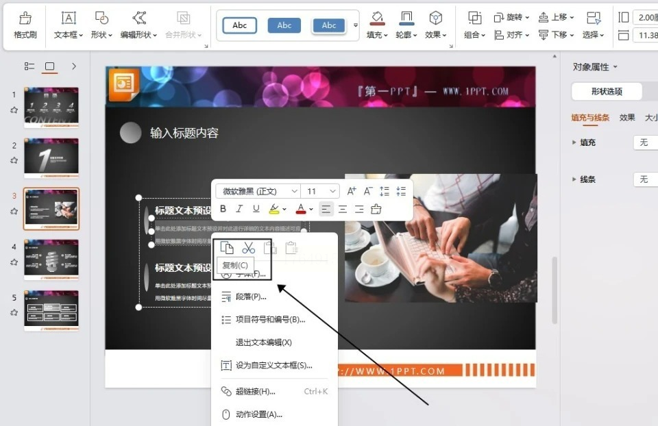 步骤二:在PPT中,切换到“大纲视图”或直接在全屏幻灯片中,用鼠标选中您需要的文字内容。如果需要提取所有文字,可以尝试在“大纲视图”下全选。