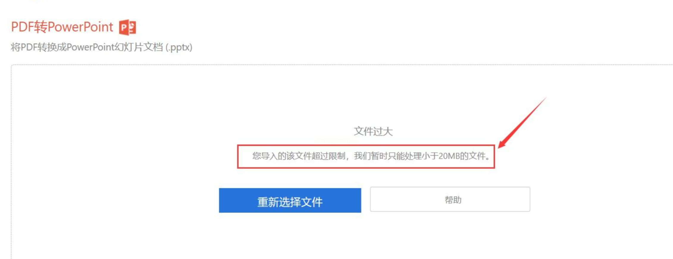 2. 点击上传按钮,选择需要转换的PPT文件(注意:该网站通常支持20MB以内的文件)。