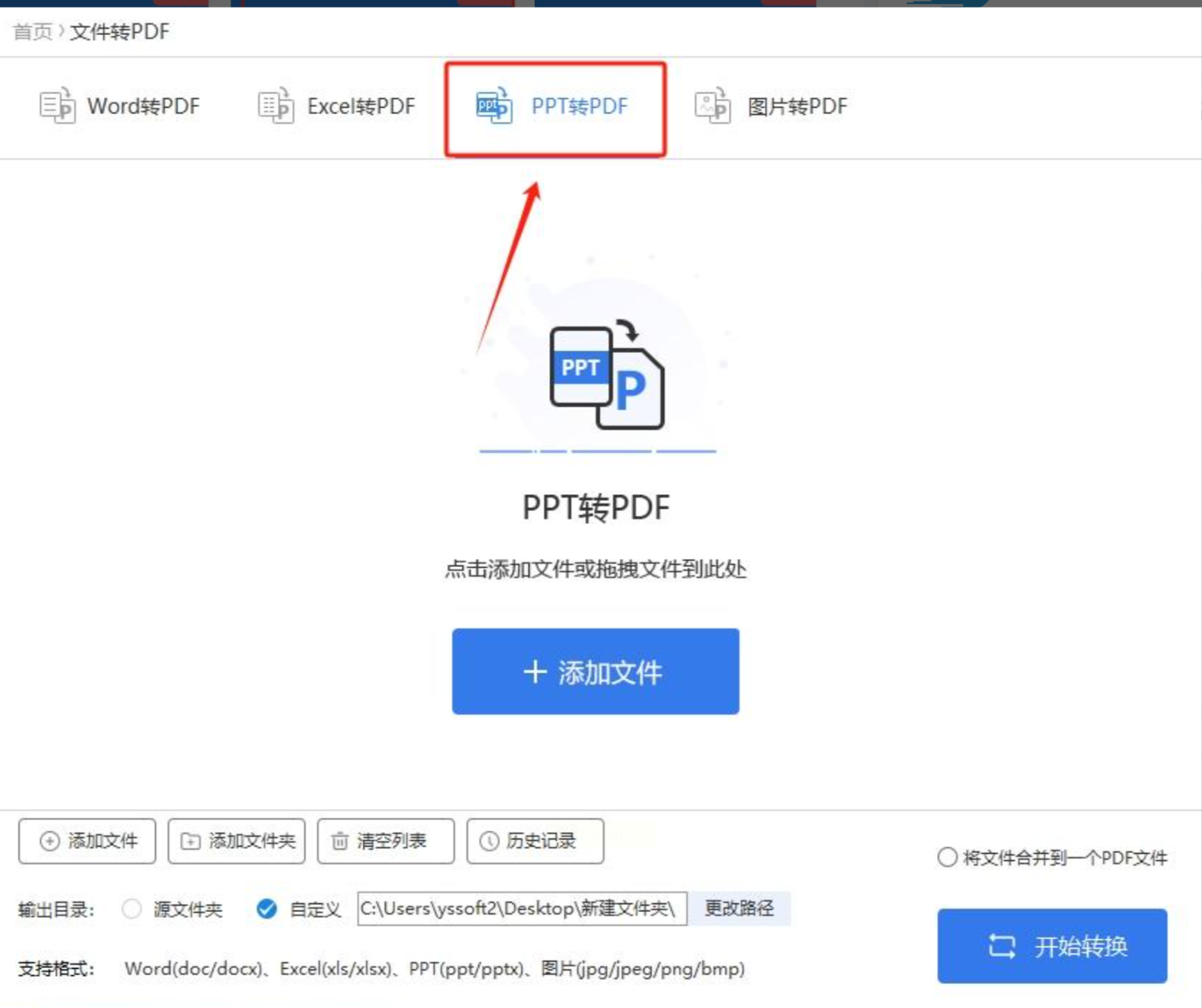 4. 点击“添加文件”按钮,或将需要转换的PPT文件直接拖入软件界面。