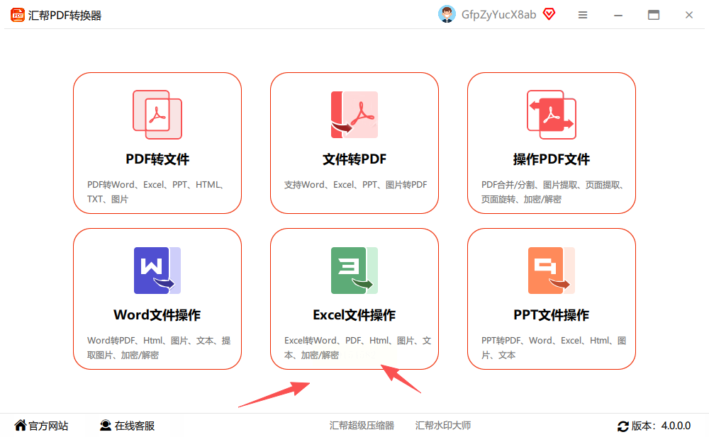 步骤一:在电脑上打开汇帮PDF转换器软件。在主界面上,你会看到“Excel文件操作”这个分类,点击它。