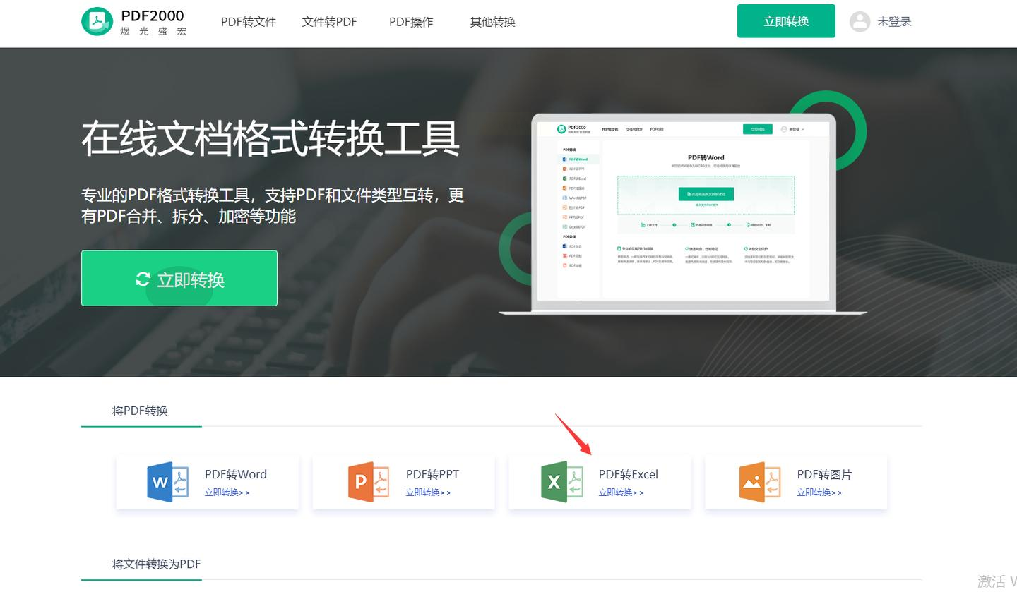 访问其网站首页,直接找到并点击“PDF转Excel”功能图标。