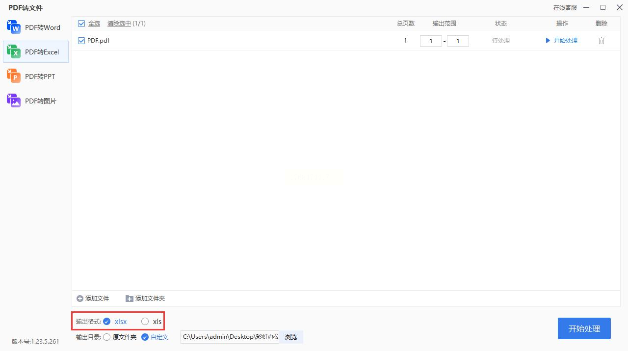 最后,设定好文件输出路径,点击“开始处理”按钮,等待转换完成即可。