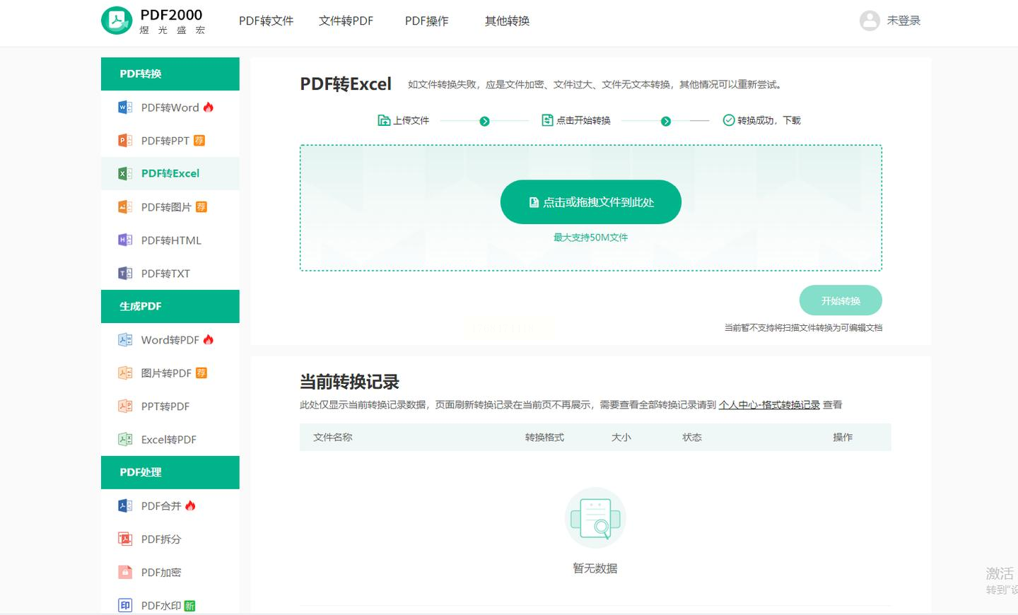 网站会标明支持的文件大小限制(例如最大50M)。点击上传按钮,选择你的PDF文件,然后点击“开始转换”。转换完成后,直接下载Excel文件到本地。