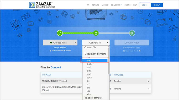 3. 设置参数:在格式选项中选择"Word(.doc或.docx)",支持单次上传单个文件。