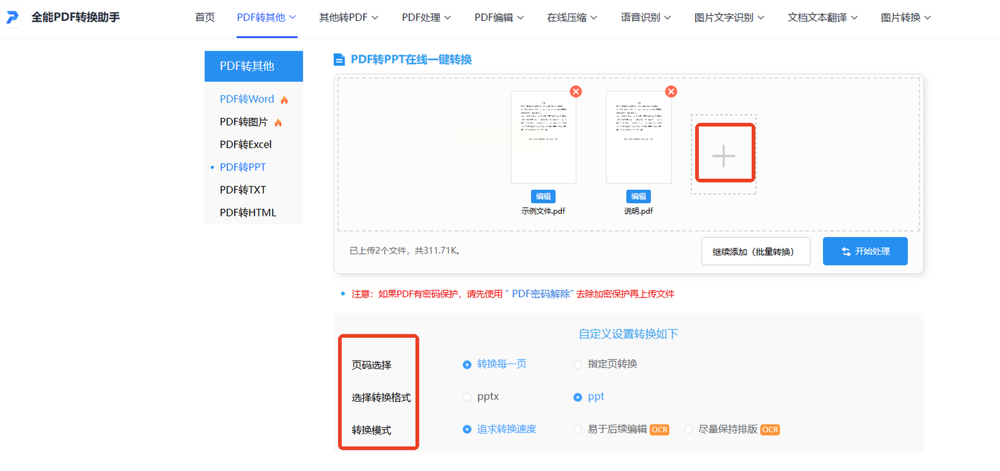 步骤五:设置完成后,点击转换,等待处理完毕即可查看生成的PPT文件。